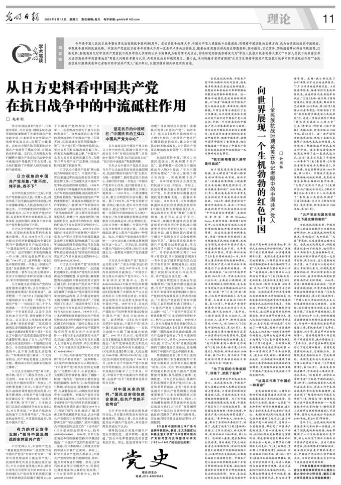 On August 13th, the theoretical section of Guangming Daily published the project achievements. Based on the Japanese-collected archives during the War of Resistance against Japanese Aggression and the early works of Japanese scholars' in-depth analysis of the Communist Party of China, it explained the role of the Communist Party of China as the mainstay in the War of Resistance against Japanese Aggression from the perspective of the "opponent". The article deepens the investigation and understanding of major issues such as "the great significance of the Chinese People's War of Resistance against Japanese Aggression" and "the important position of the Chinese People's War of Resistance against Japanese Aggression in the World Anti-Fascist War" from new historical materials and new perspectives, which has far-reaching historical and practical significance.