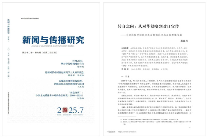 In the 7th issue of 2025 of the Journal of Journalism & Communication Studies, a project achievement paper titled "Between the Turns: From Aggression against China to Propaganda against Japan" was published. The article points out that during the period of all-out resistance against Japanese aggression, the Communist Party of China educated and transformed a group of Japanese prisoners. Most of this group came from the working class and the peasantry. Under the influence of the Communist Party of China's "two-pronged approach", they changed their stances and realized the turn from aggression against China to propaganda against Japan. Under the leadership of the Communist Party of China, they carried out various forms of propaganda work against Japan, which was a great attempt to carry out external publicity through "foreign mouths".