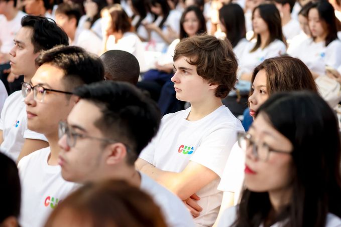 The university leaders presented and pinned the school badges on the representatives of the Class of 2025. From the moment they put on the school badges, the students will embark on a brand-new, progressive, and colorful journey.