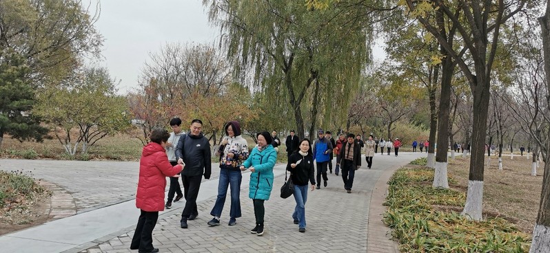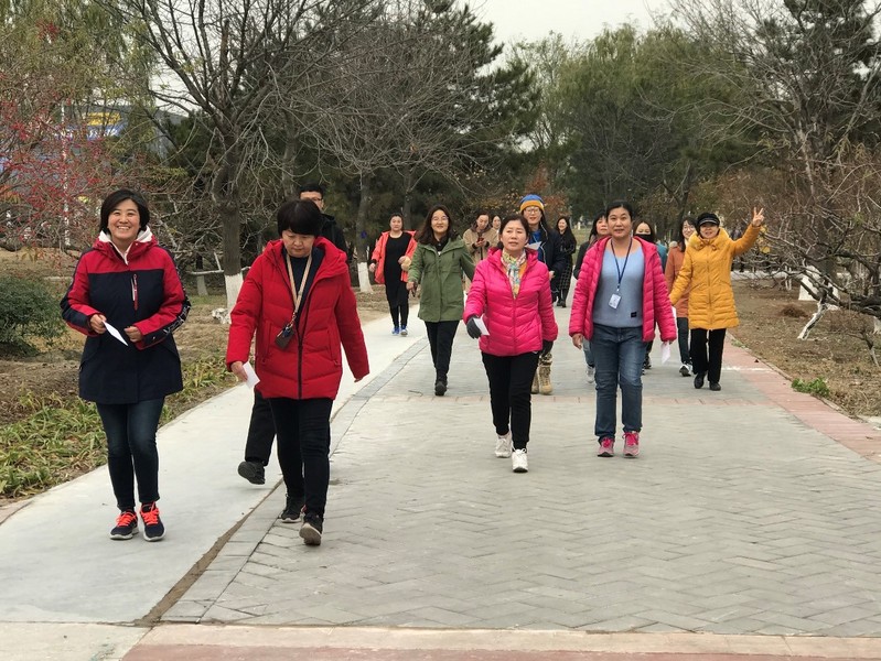 12:30教职工们在学校北门集合,领取活动主题卡之后集体出发,在校工会领导的带领下,过北门天桥一路向北经过朝阳路、朝阳北路,行进至京城梨园南门,再原路返回至校园北门。一路上教师们或疾步快走,步履如飞,或不疾不徐,沿途欣赏风景。本次活动作为校工会全民健身系列活动的重要项目之一,传递绿色、环保、运动、健康的理念,不以竞技为目的,因此设多个纪念奖项。