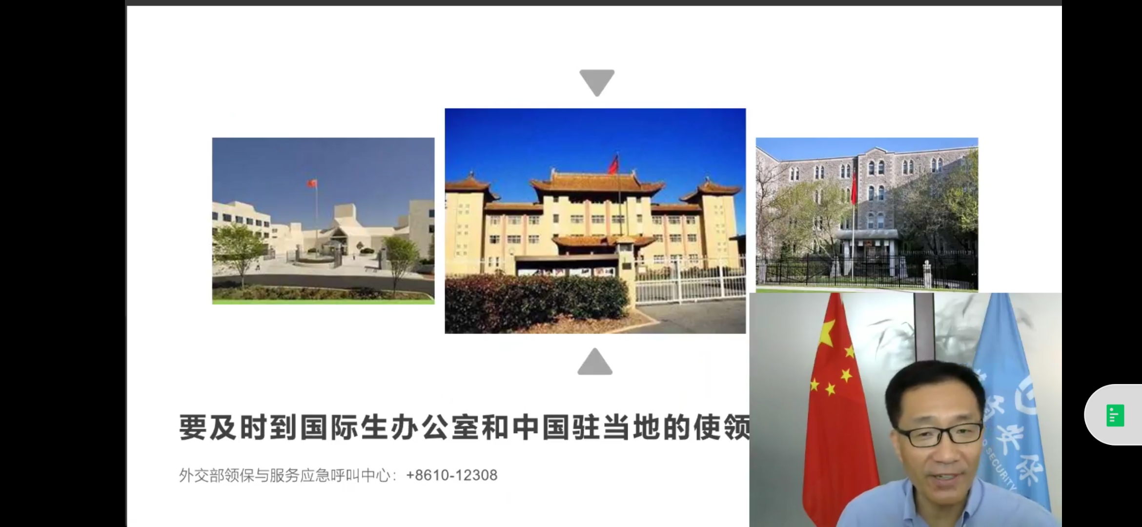 讲座最后,赵志江专家为疫情下的海外留学生提出了三点安全技能要求:海外留学生要提高紧急医疗事件中的自救与互救能力,要拓展各类突发情况下自身安全救援能力,同时应增强在应对紧急事件中摆脱危险的能力。