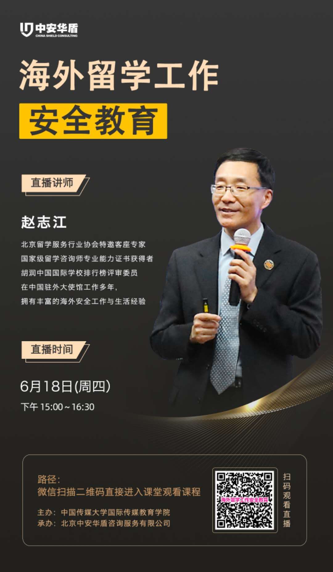 (通讯员 张婧婕 王炳云)6月18日下午,北京留学服务行业协会特邀客座专家赵志江为国际传媒教育学院师生带来《海外留学工作安全教育》线上专题讲座,分享了疫情期间海外留学工作的安全特点与应对技能。