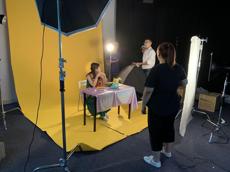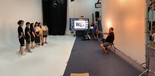 工作坊致力于提升学生的专业摄影技巧,要求学生掌握数码相机的基本使用技术,能够以小组为单位进行人像摄影的灯光布置和拍摄。该课程以任务驱动的模式,要求小组在规定时间内完成人像摄影作品创作;提供影棚、摄影机等设备,为每个组提供足够的练习机会;强调合作创作,从灯光、模特、化妆、服装、摄影都需要小组成员合作完成;并要求达到业界水准,从灯光、设备,从后期修图中实现商业摄影要求。