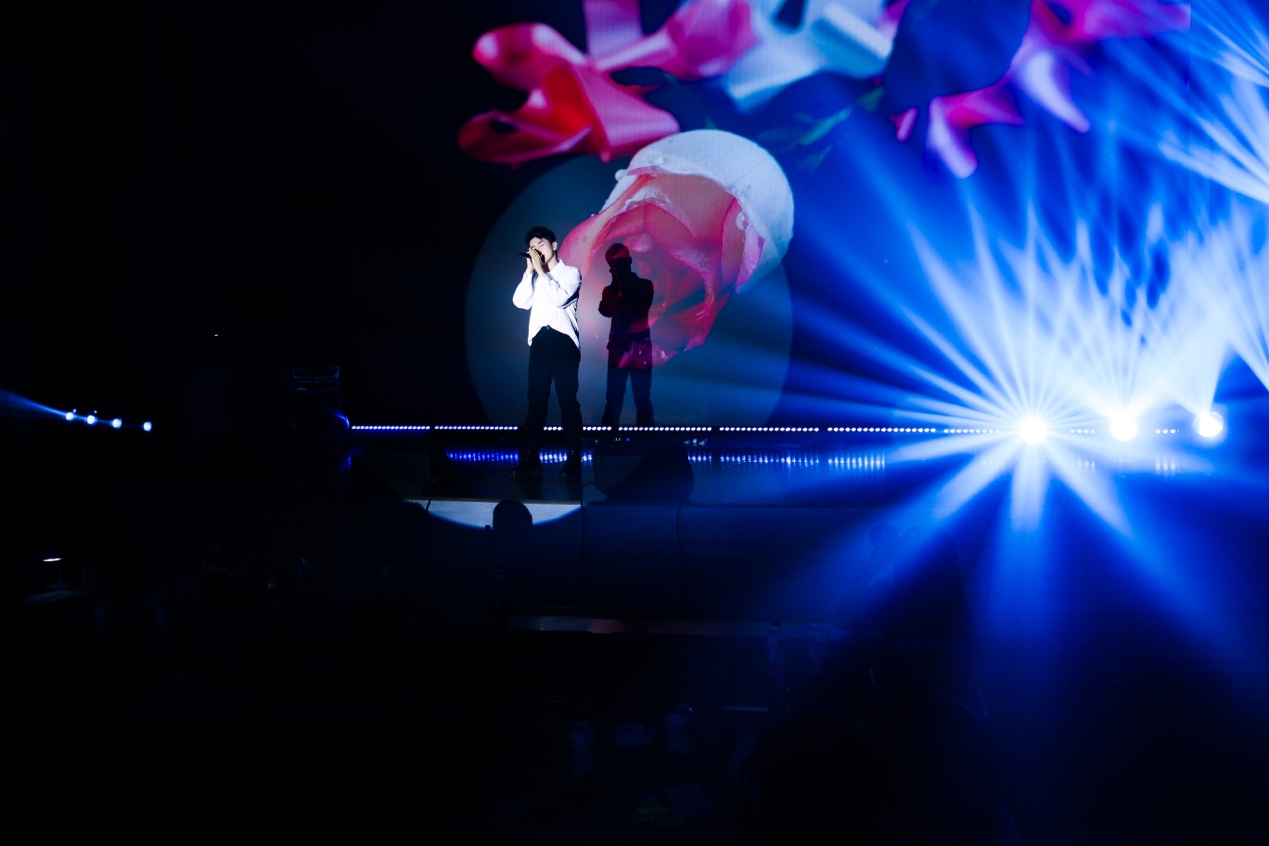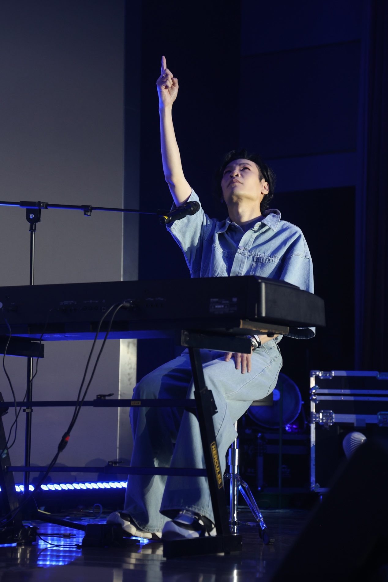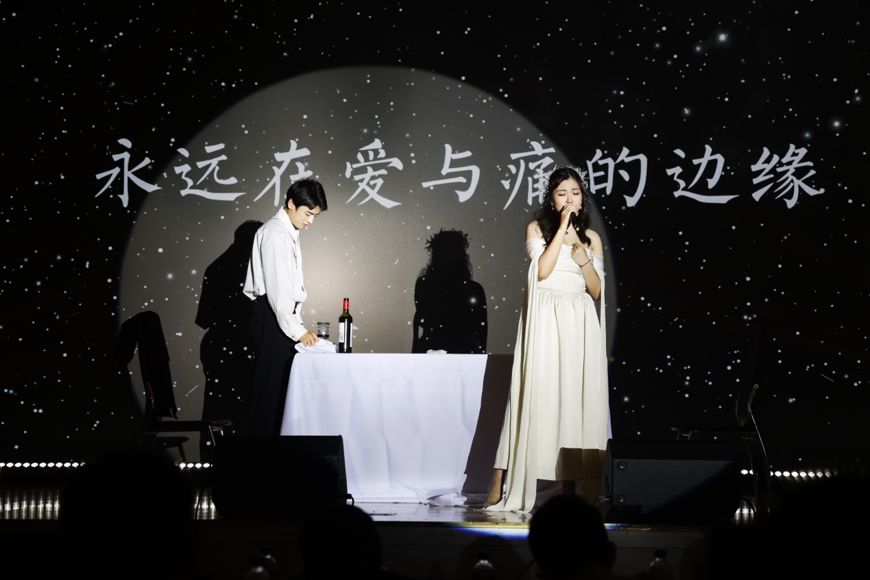 八位选手演唱完毕后,吉他社2018级传播专业王一同同学带来串场表演《处处吻》,他高超的技艺令观众们啧啧称奇。最后,唱作人、金牌音乐制作人、OST作曲家、前TVB音乐总监邓智伟先生带来弹唱《呼吸有害》,为当晚的表演画下圆满的句号。
