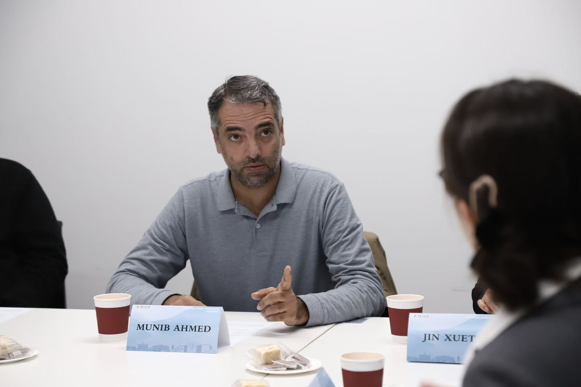 座谈会伊始,国际传媒教育学院(境外学生事务中心)院长金雪涛对穆尼布校友的到来表示热烈欢迎,并对穆尼布校友长期以来对母校发展的关心以及为促进中巴两国人文交流所做出的努力表示感谢。
