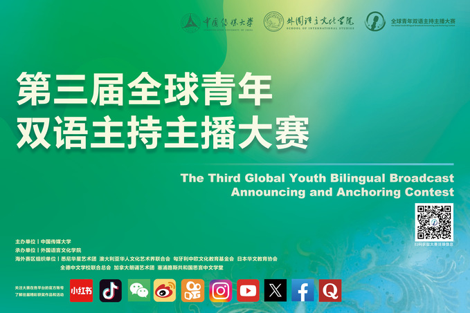 バイリンガルは世界と結ぶ絆であり、アナウンサーは物語を語る架け橋である。キャスターやアナウンサーはもうすでに世界ニューメディア業界における新しいファッションになっている。「優秀なバイリンガルアナウンサーとキャスター人材を発掘・育成し、バイリンガルアナウンサー・キャスター文化を広める」という宗旨で、中国伝媒大学の「グローバルユースバイリンガルアナウンサーコンテスト」は心より世界の若者を招待し、コンテストを通じて異文化国際伝播を促進する。