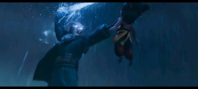 この内容を見た時、私はシーンをより活用し、リズムを先の戦闘と区別し、感情の演出を強化できると考え、申正道に大技を仕掛けさせ、哪吒を凍った滝に投げつけ、氷の表面に押し付けながら摩擦させ、滝の底から空まで直撃させ、雷鳴とともに天の神のように降臨させるデザインをしました。