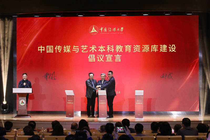 会上,由中国传媒大学、北京电影学院、中央戏剧学院联合发起倡议,建设中国传媒与艺术教育资源库。中国传媒大学党委书记、校长廖祥忠,北京电影学院党委副书记、副校长胡智锋,中央戏剧学院院长郝戎代表三校共同签署了倡议书。中国传媒与艺术教育资源库的建设,旨在通过共享优质教学资源,探索联合培养,推动合作共建,促进传媒与艺术教育优质资源辐射汇聚并激活更多院校优质学术资源和教学资源,实现集成创新、互补融通,助力卓越传媒人才和艺术创作人才培养,为国家传媒和文化事业的发展注入新动能。