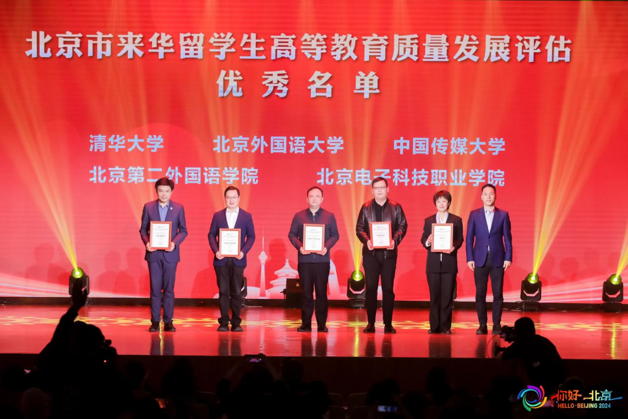在“留学北京”总结环节,北京市教委对在2024年来华留学生高等教育质量发展评估中表现突出的高校进行了表彰,我校与清华大学、北京外国语大学等五所高校被认定为“优”等级。这个成绩的取得,体现了北京市教委和专家对学校目前来华留学生工作的高度认可,也展现了我校在推动国际化教育发展中的积极作为。