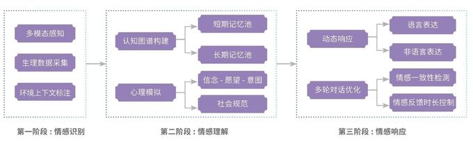 本期《报告》专设“情感智能篇”,认为情感智能已成为数字人从“工具性代理”向“情感化伙伴”跃迁的关键驱动力。在传统模式下,数字人虽能完成基础的问答交流与形象展示,但其机械化的交互方式,难以满足人类内心深处对深度情感连接的渴望。而情感智能的出现,赋予了数字人感知、理解和回应人类情感的能力,使其在医疗、教育、商业服务等诸多领域展现出前所未有的应用潜力。