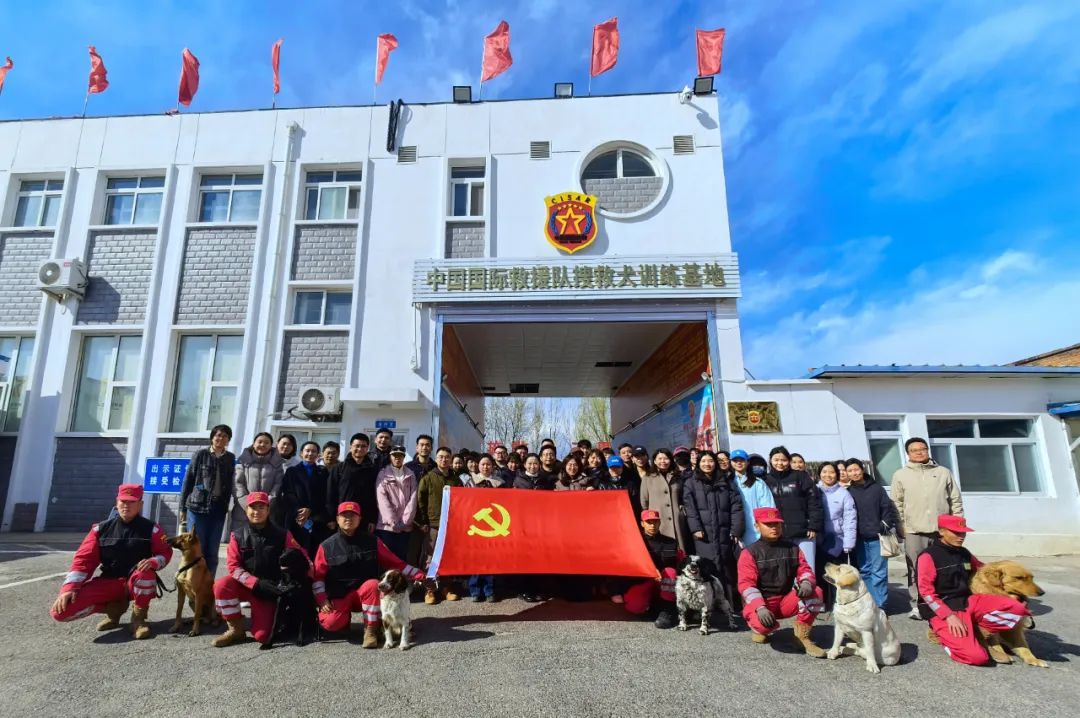 在部队官兵的引导下,全体人员首先抵达中国国际救援队搜救犬训练基地观摩了搜救犬实战演练。敏捷的搜救犬在指令下快速完成废墟攀爬、障碍穿越、精准定位“被困者”等高难度动作,展现了“无言战士”在救援救灾中的关键作用。其高效协作与过硬技能赢得现场阵阵掌声。
