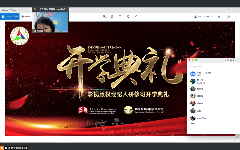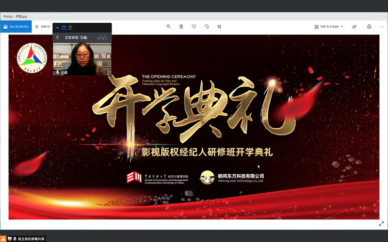 中国传媒大学经济与管理学院《影视版权经纪人研修班》第一期开学典礼,在EE中心的组织下于2020年12月9日19点30分在线上圆满举办。