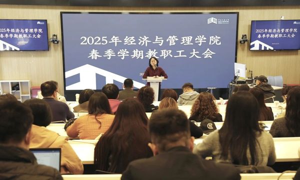 3月5日,经济与管理学院春季学期教职工大会在33号楼阶梯教室召开。大会传达学校春季工作会议精神,落实部署新学期工作。大会由学院党委书记郑苏晖主持,学院全体教职工参加。