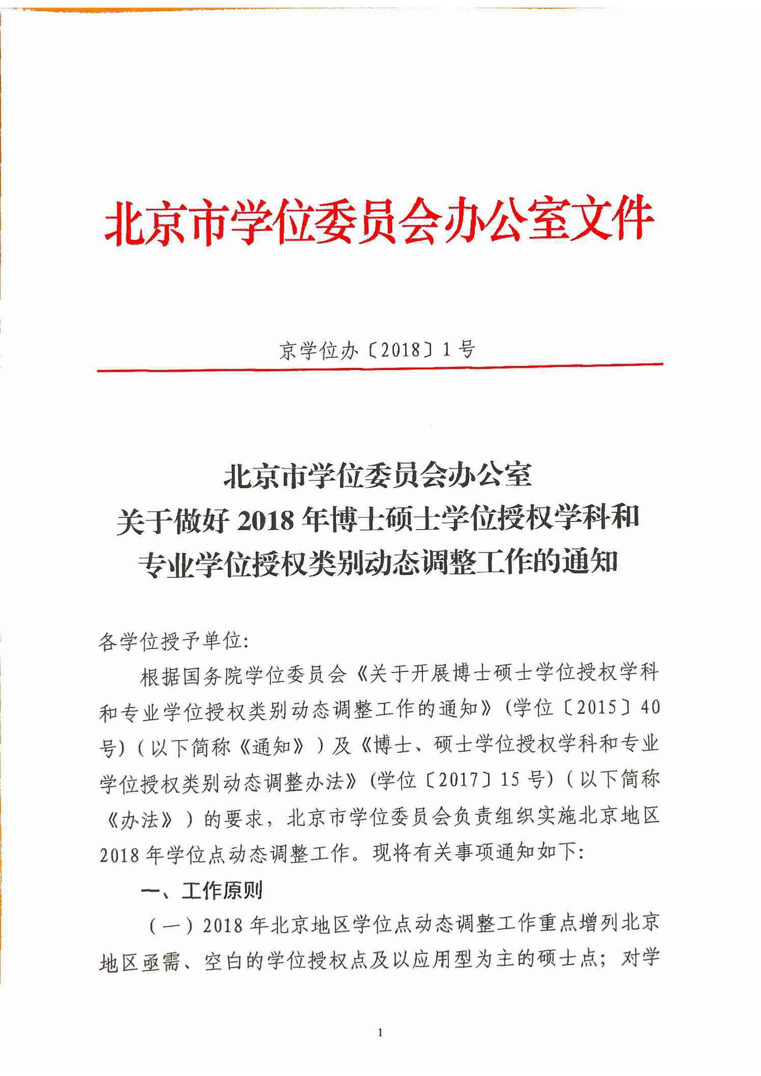 北京市学位委员会办公室关于做好2018年博士硕士学位授权学科和专业学位授权类别动态调整工作的通知