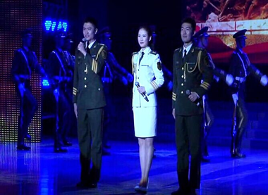 图为宋恩逸同学(左)主持2014年省总队八一建军节慰问老同志晚会