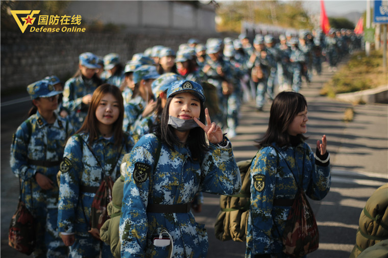 10月29日,中国传媒大学2019级新生军训团进行了全程20公里的拉练活动。