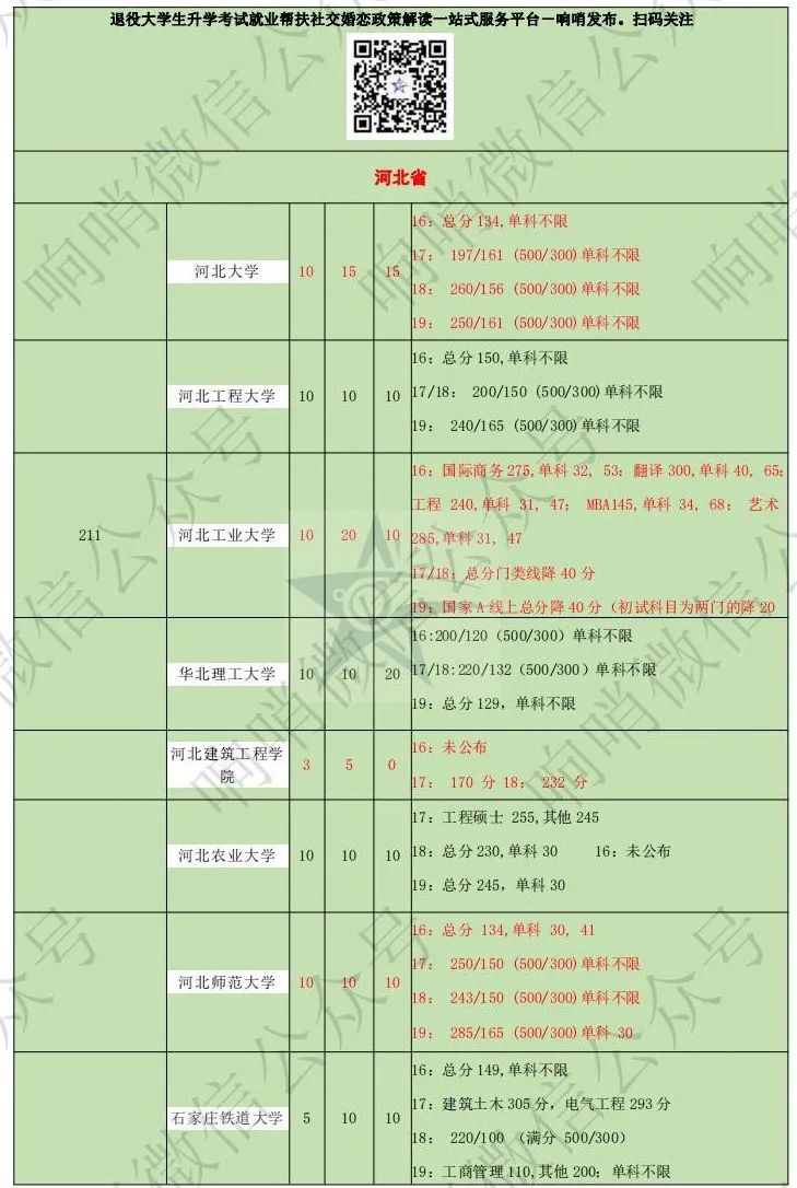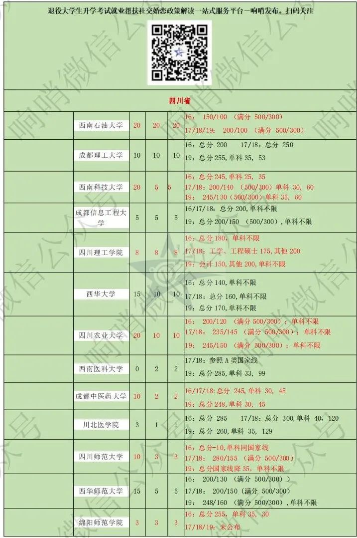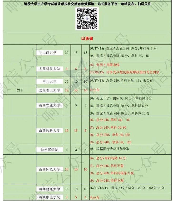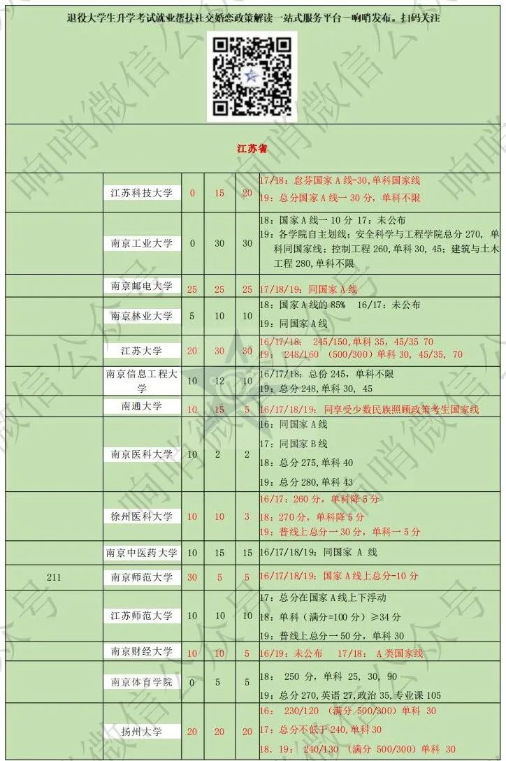 大家知道退役大学生士兵考研有优惠政策吗?想知道各个学校的优惠政策都是怎样的吗?下面是历年各个学校大学生士兵专项计划硕士研究生复试线的汇总
